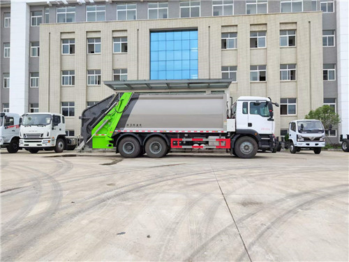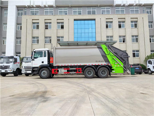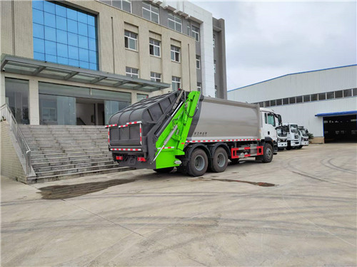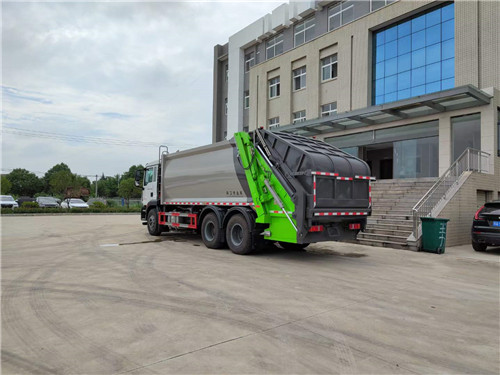 國六重汽汕德卡后雙橋壓縮式垃圾車:容積18-22立方,國六濰柴350馬力發(fā)動機,G5-M系列駕駛室,軸距:4300+1350,豪沃10檔變速箱,5.5噸前橋,11噸雙后橋(選裝12檔變速箱,16噸雙級輪減橋),280大梁,11.00R20鋼絲胎,300L鋁合金油箱,四通道ABS,博世方向機,氣囊座椅,電動玻璃,中控鎖,搖控鑰匙,可調節(jié)多功能方向盤,電動調節(jié)帶加熱后視鏡。國六重汽汕德卡后雙橋壓縮式垃圾車全方位圖片展示: