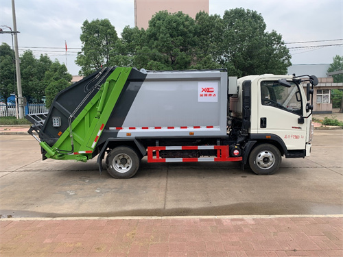 國六豪沃7方壓縮式垃圾車底盤配置:1.9米寬單排駕駛室、5噸后橋、氣喇叭、7.00R16鋼絲胎、空調、中控門鎖、電動門窗、遙控鑰匙、120升鋁合金油箱,國六豪沃7方壓縮式垃圾車圖片展示: