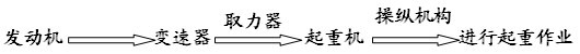 隨車吊在作業時,使用發動機傳遞出來的動力通過取力器將動力傳遞給起重機、再通過操縱機構對起重機的控制從而實現貨物的升降、回轉、吊運。