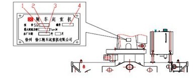 1、起重機型號 2、最大的起矩重力 3、出廠日期 4、出廠編號