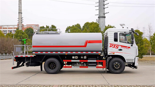 國六東風D3s灑水車上裝配置:罐體用4 mm武鋼鋼碳?板制作,容積12立方,罐內隔板具有防波作用,用專?用自排?自吸水灑泵,前沖、后灑、側噴、高位花灑、工后?作平臺、360可度?調綠節?化水炮,流自?閥、濾網、消防接口(連可?接消防栓取水,可作應急消防用),前罐?量管(觀罐察?內水位)、罐后爬梯、上罐?罐口、帶易簡?護欄、抽管水?兩根,罐表體?面雙層油漆工藝開選裝功大?率霧炮。