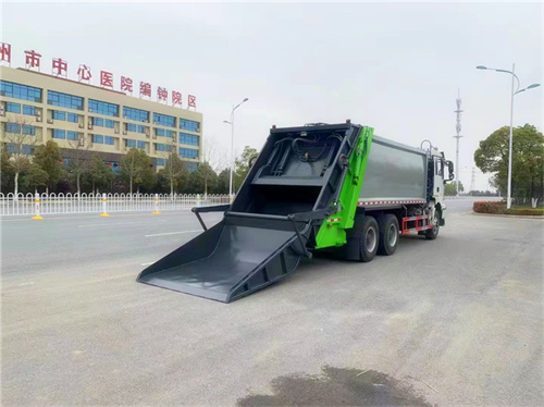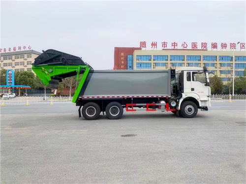 陜汽20方壓縮式垃圾車選裝配置:1、掛桶翻料機構。 2、簸箕翻料機構。3、后擺臂翻轉結構。4、大落地斗翻轉結構。5、稱重功能。