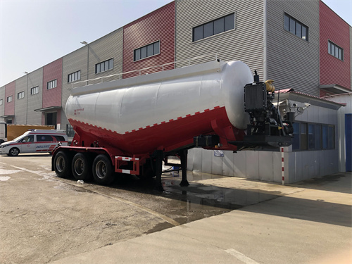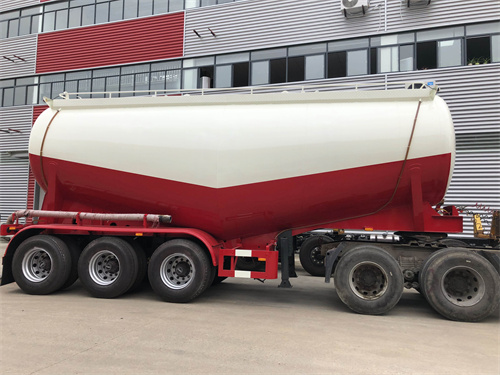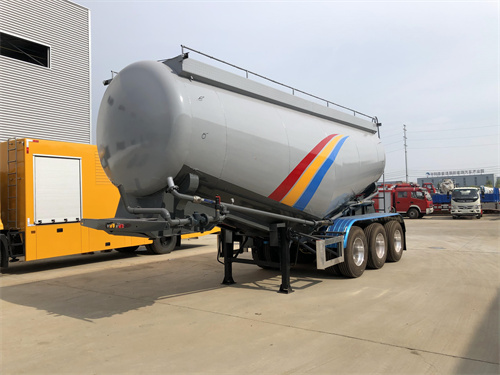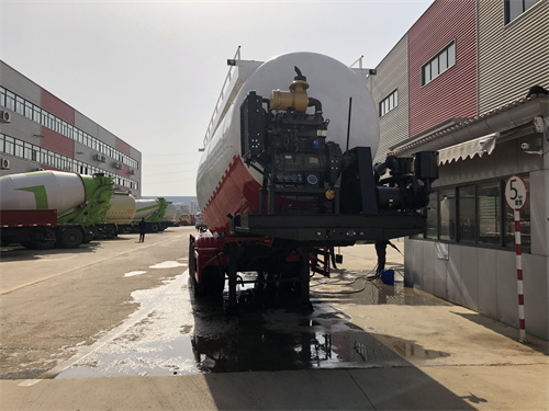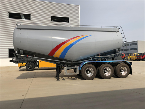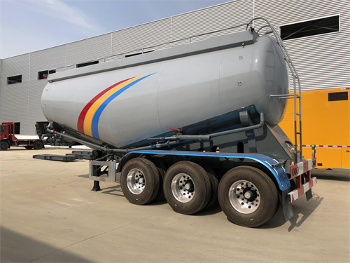 罐體材質采用高強度耐磨錳鋼板制作,筒體4mm,封頭5mm,50#或(90#)牽引銷,輕型4片20mm鋼板彈簧,3個13噸的富華橋,16噸剎車片,28噸單動支腿,12R22.5的鋼絲胎,12條胎無備胎,50銷懸掛一套,尾部安裝爬梯。