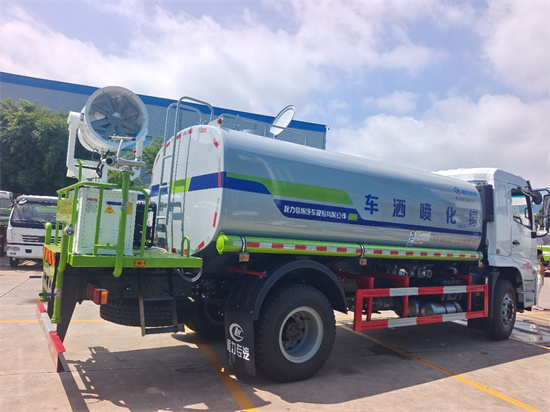 【上裝配置】14.7立方米,罐體4mm厚,封頭4mm,前沖,后灑,側(cè)噴,后尾部高炮可調(diào)節(jié)柱狀雨狀,60-90灑水泵,泵進泵出,帶一個60消防接頭,控制前對沖與左右后灑,兩根罐體等長的吸水管、兩道防浪板、后加大工作平臺。