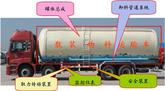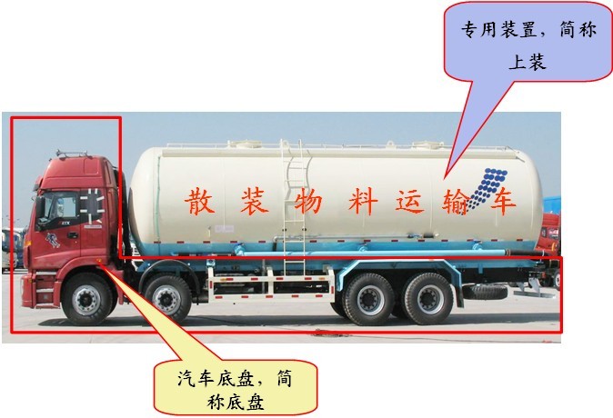 散裝物料運輸車由汽車底盤和專用裝置兩部分組成.