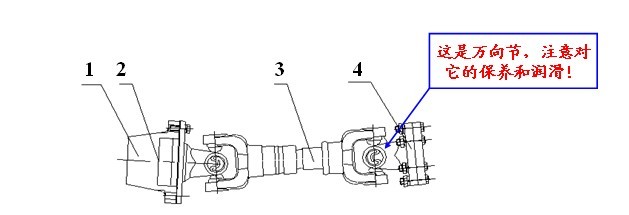 1 、取力器    2、取力器輸出法蘭     3、軸管  4、空壓機法蘭