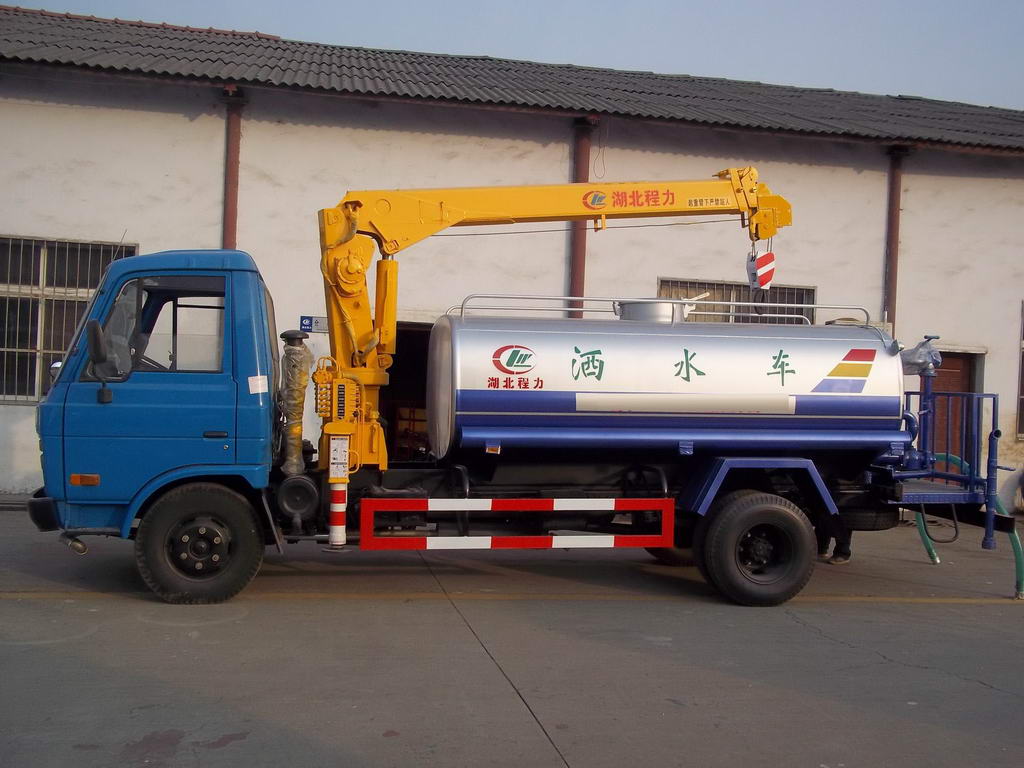 廠家直銷隨車吊灑水車,購車熱線0722-3817899,隨車吊灑水車又名:隨車吊帶灑水,是在保證隨車起重運輸車與整車的操作穩定性和安全性下,在車廂上配裝水罐和動力機以及噴頭和灑水炮等灑水功能,另可在吊臂上加裝高空作業斗,使該車具備灑水、運貨(吊下灑水罐后)、自裝自卸貨物、高空作業等多種功能,是一種理想的多用途產品。適用于園林、倉庫、碼頭、船舶、鐵路等行業,配置吊籃可以用于高空作業,也可以安裝抓具,用于抓舉各種物件。