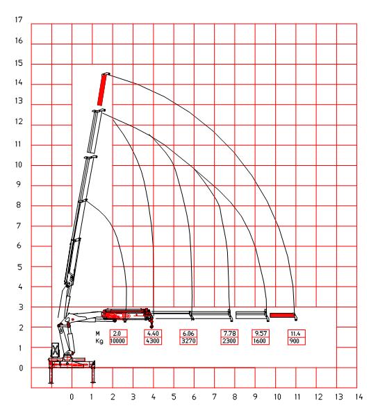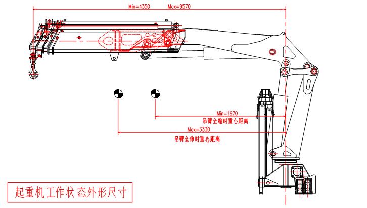 SQ10ZA3工作半徑9.57,手動吊臂工作半徑可加長到11.4,起重能力為900kg.