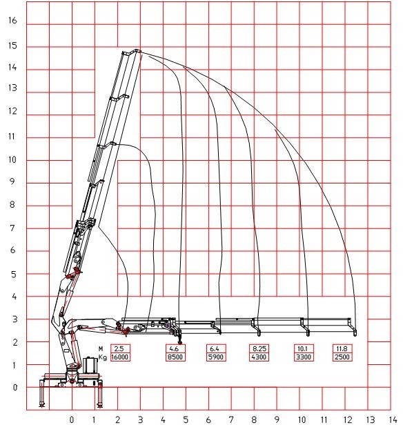 湖北程力集團16噸隨車吊五節折疊臂參數--SQ16ZA4